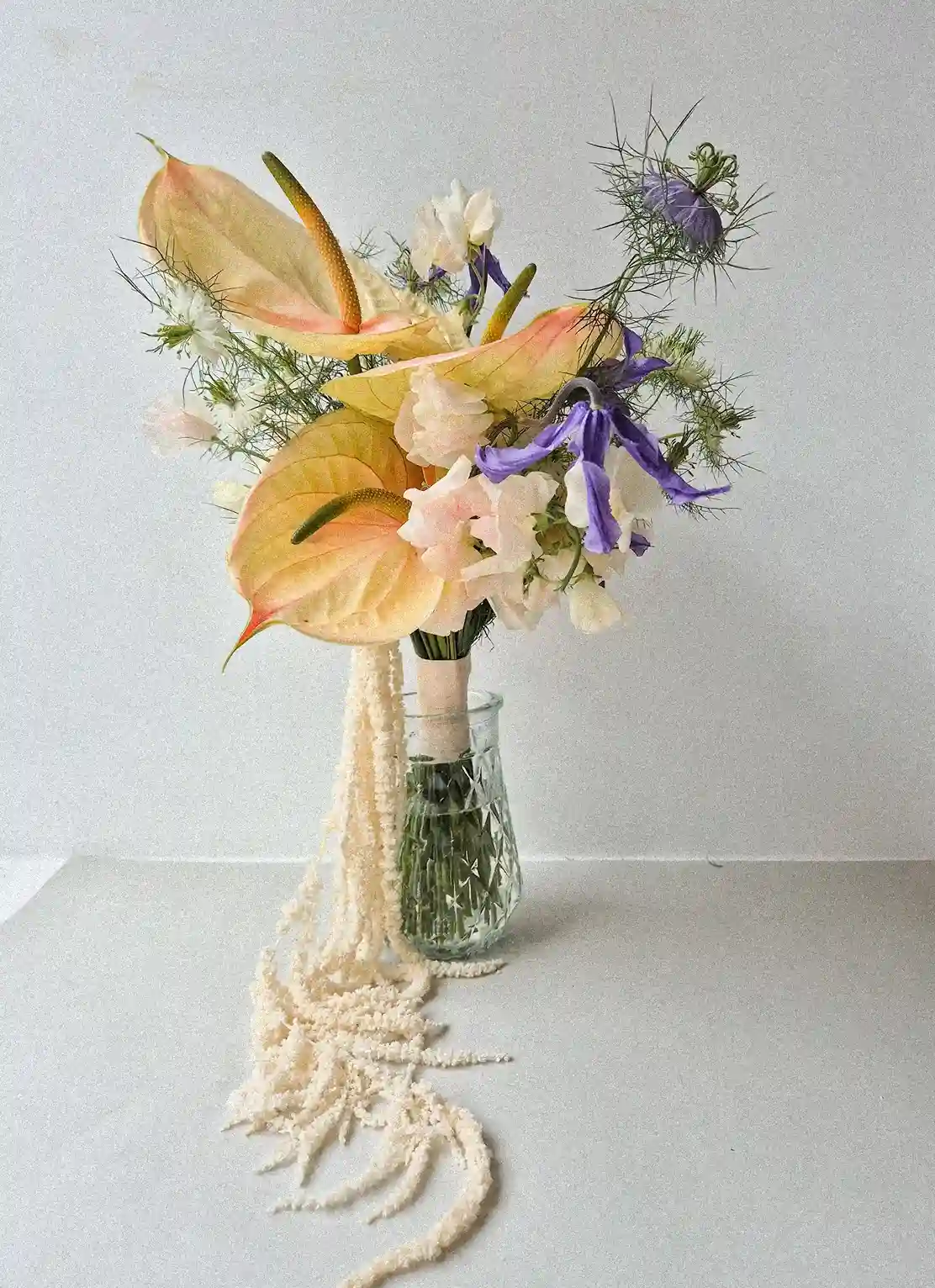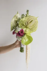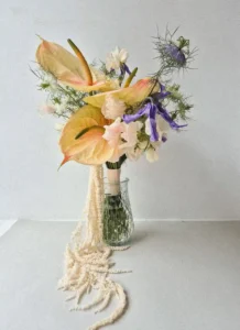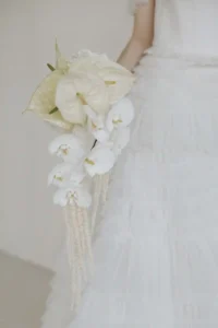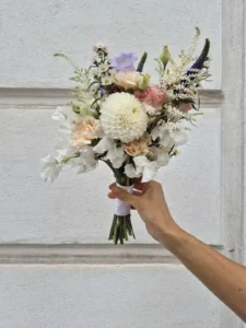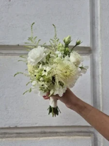 The minimum order quantity of rings is usually higher than the actual use of the rings in the bouquet. This helps to choose the most beautiful and suitable blossoms for the bouquet. Bridal bouquets range in price from €60, exceptions apply only to gobo bouquets, exotic leaf bouquets and single blossom options.