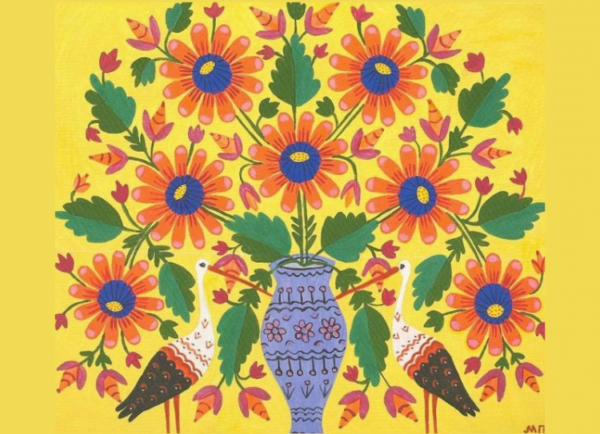 An outdoor flower bouquet based on the painting “Dear Spring, What Have You Brought?” by Ukrainian artist