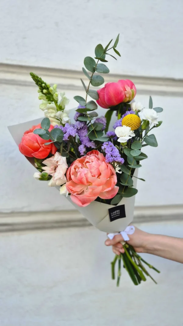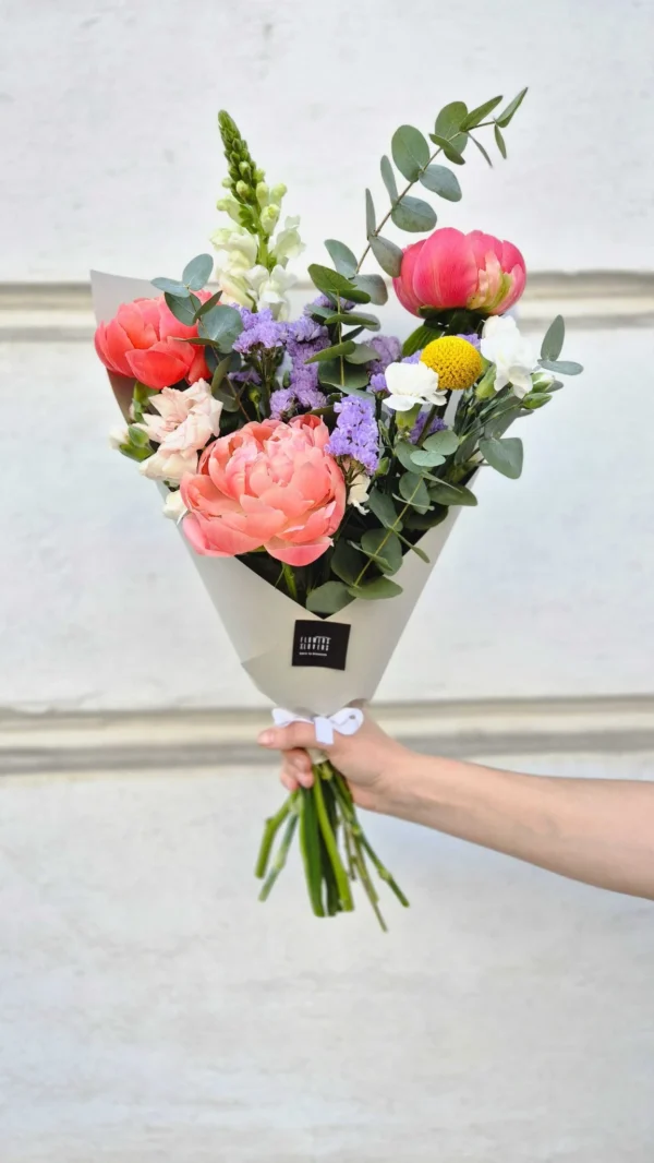 - Main flowers: peonies, limonium, cloves, craspedia, yarrow, ranunculus and eucalyptus